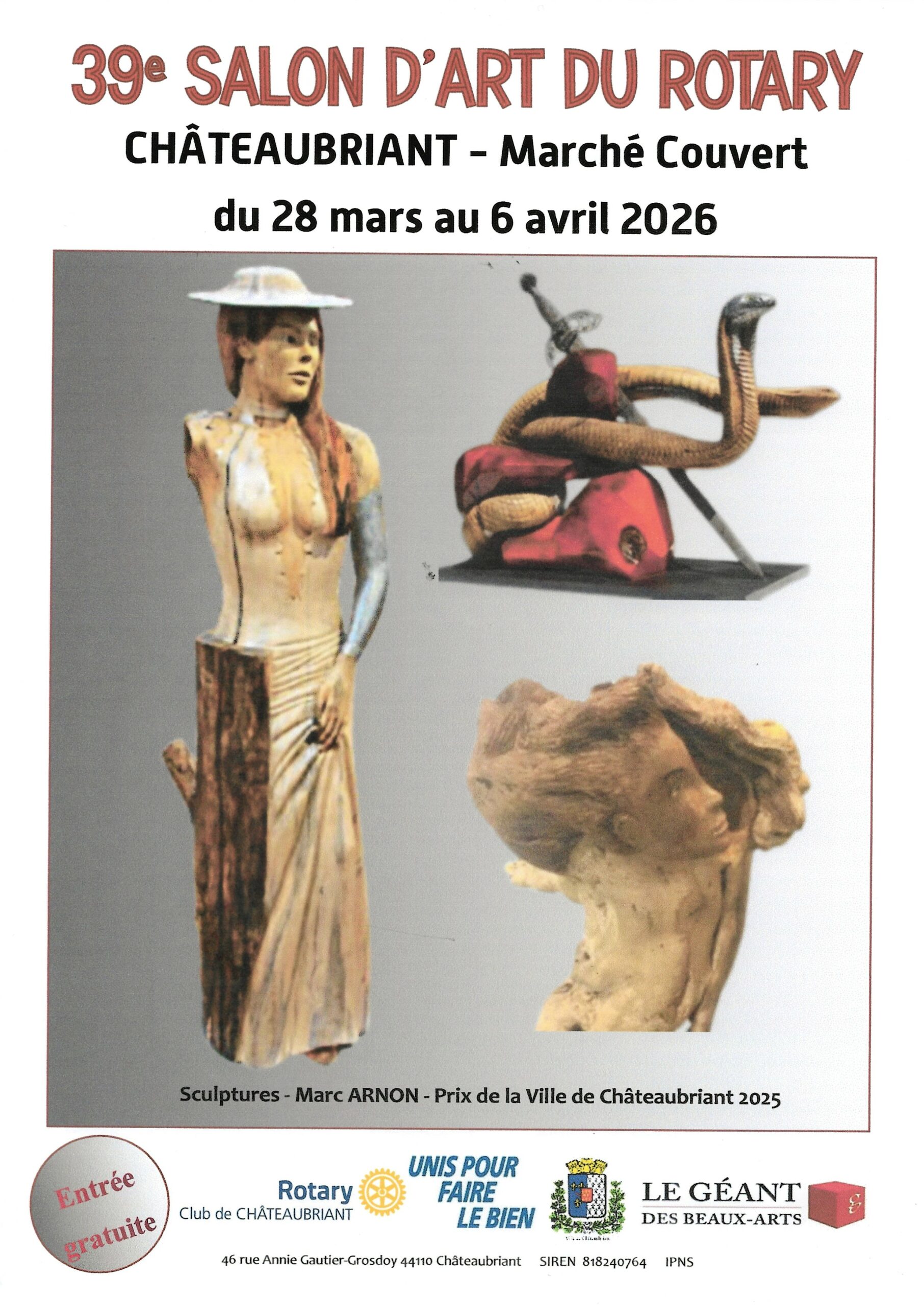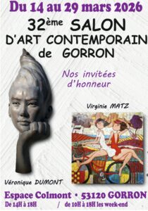 32e Salon d'art contemporain de GorronDu 14 mars au 29 mars 2026 39e Salon d'art du Rotary ChateaubriantDu 27 mars au 6 avril 2026 Salon des arts de St-Quay-PortrieuxDu 11 avril au 26 avril 2026 8e Salon des artistes Les HerbiersDu 11 avril au 24 mai 2026 24e Salon d'art de Guilliersdu 25 avril au 3 mai 2026 6e Fête des arts de CrevinDu 12 au 13 septembre 2026